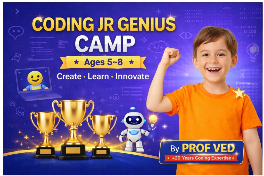 | 🤖 Coding Jr Genius Camp (Ages 5–8) | 1–3 | Explore & Enroll |